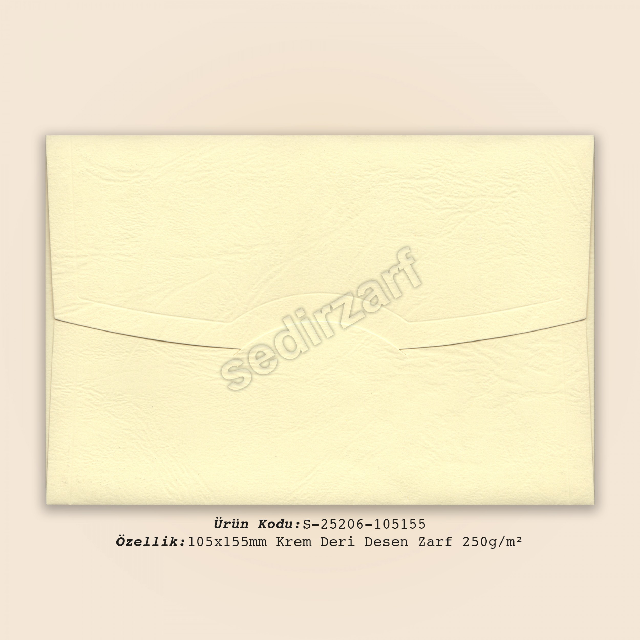 10,5x15,5cm Krem Deri Desen Zarf 250gr/m² kağıttan mamul bu zarf 50'lik paketler halindeSEDİR Zarf işçiliği ve kalitesiyle satışa sunulmaktadır.