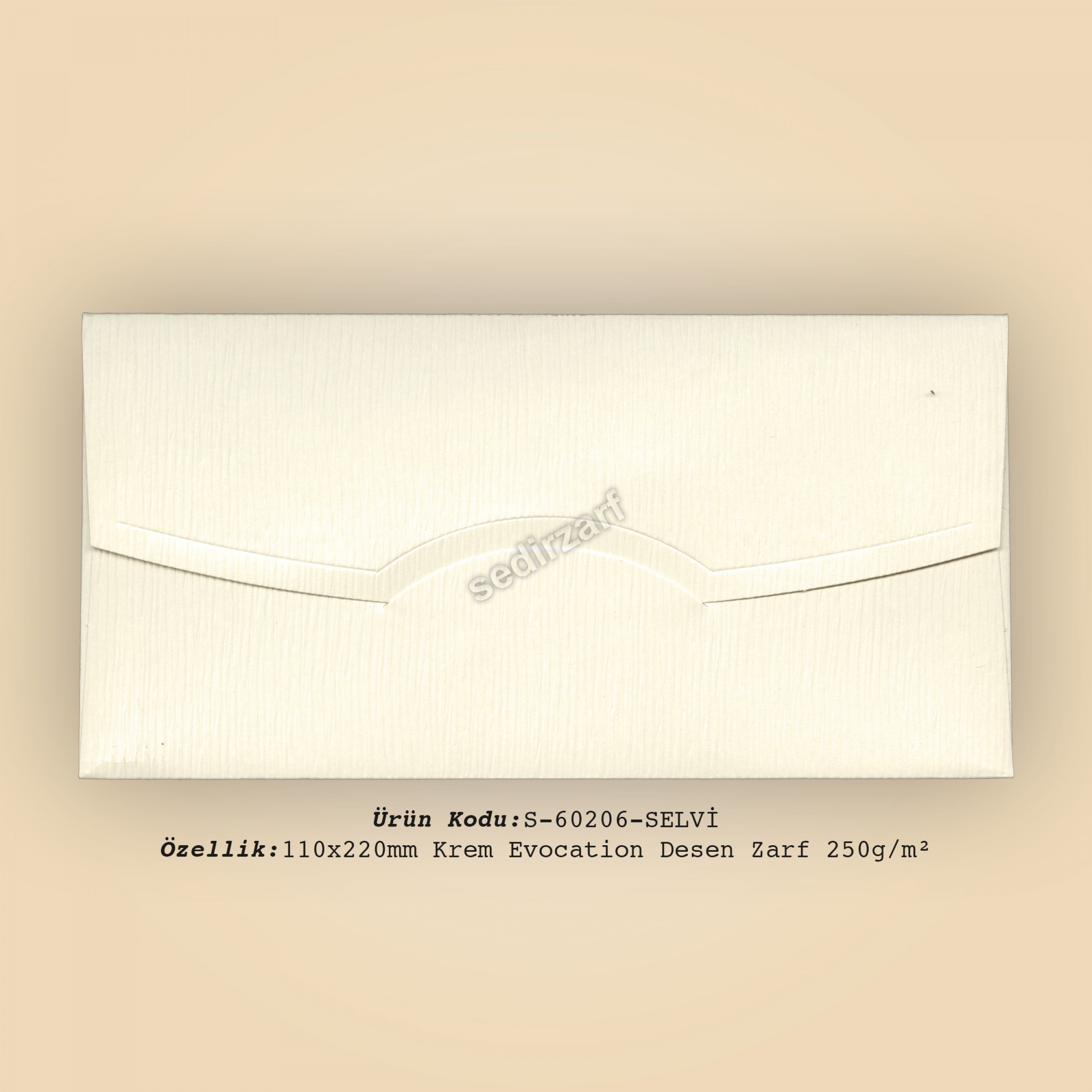 11x22cm Krem Evocation Desen Zarf 250gr/m² kağıttan mamul bu zarf 50'lik paketler halindeSEDİR Zarf işçiliği ve kalitesiyle satışa sunulmaktadır.