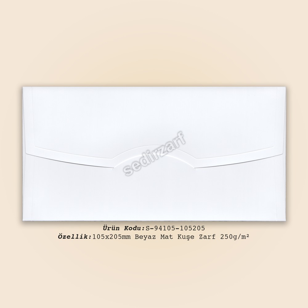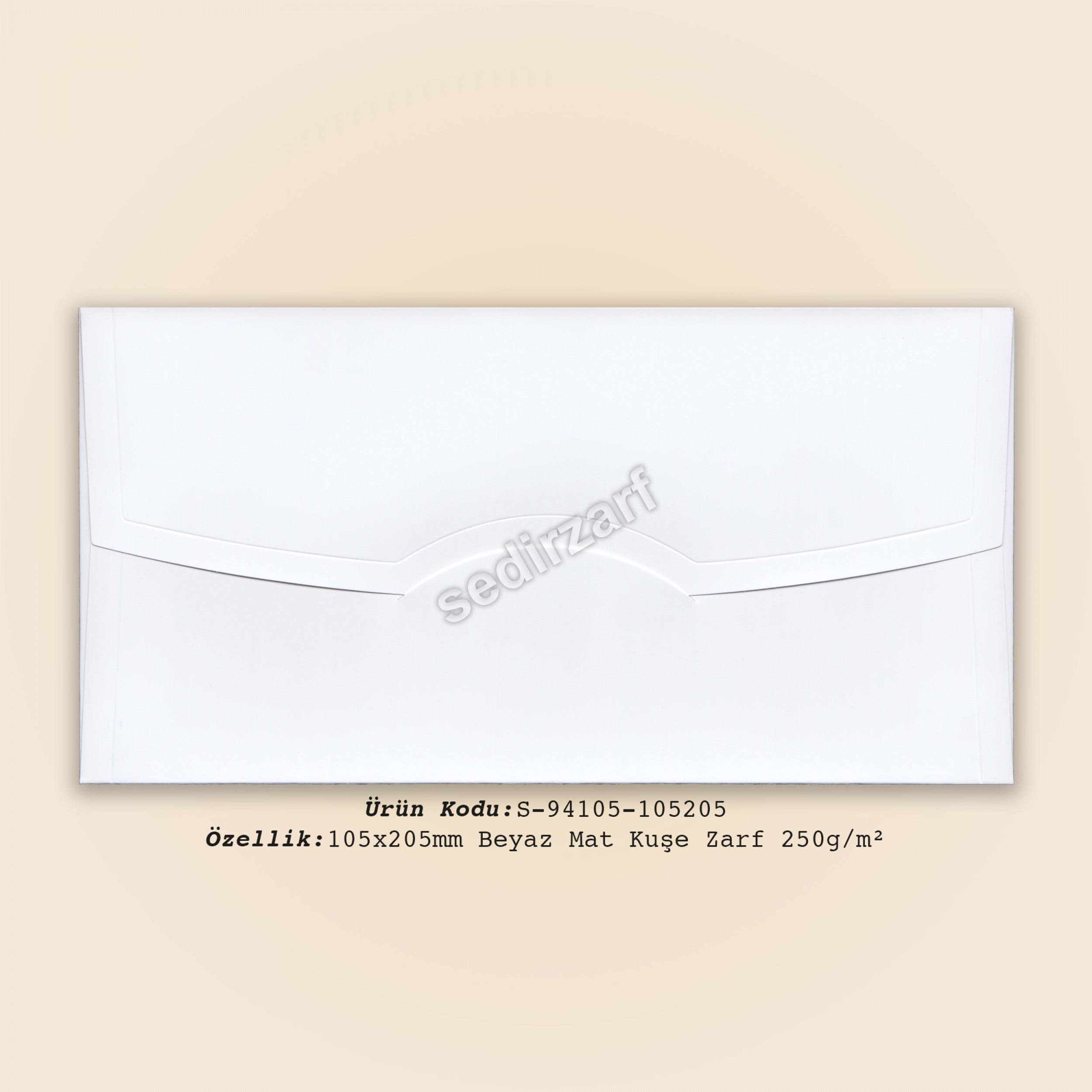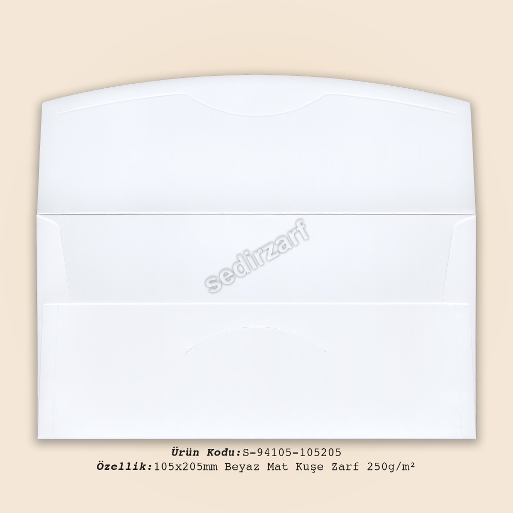 10,5x20,5cm Beyaz Mat Kuşe Zarf 250gr/m² kağıttan mamul bu zarf 50'lik paketler halindeSEDİR Zarf işçiliği ve kalitesiyle satışa sunulmaktadır.