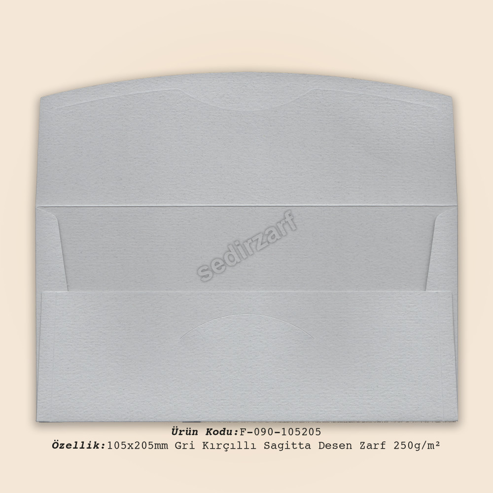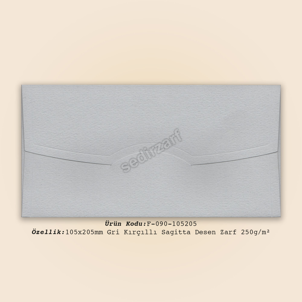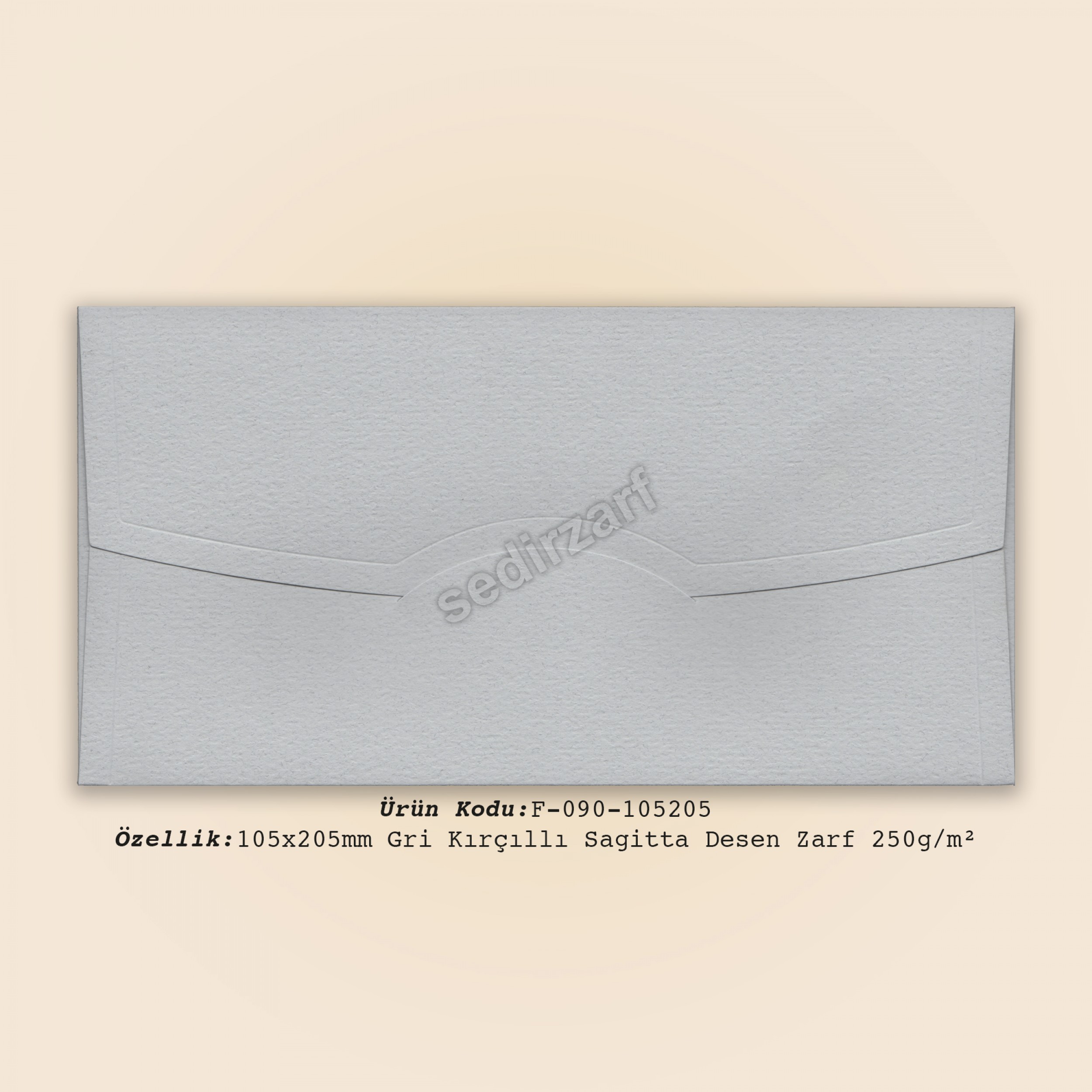 10,5x20,5cm Gri Kırçıllı Sagitta Desen Zarf 250g/m² kağıttan mamul bu zarf 50'lik paketler halindeSEDİR Zarf işçiliği ve kalitesiyle satışa sunulmaktadır.