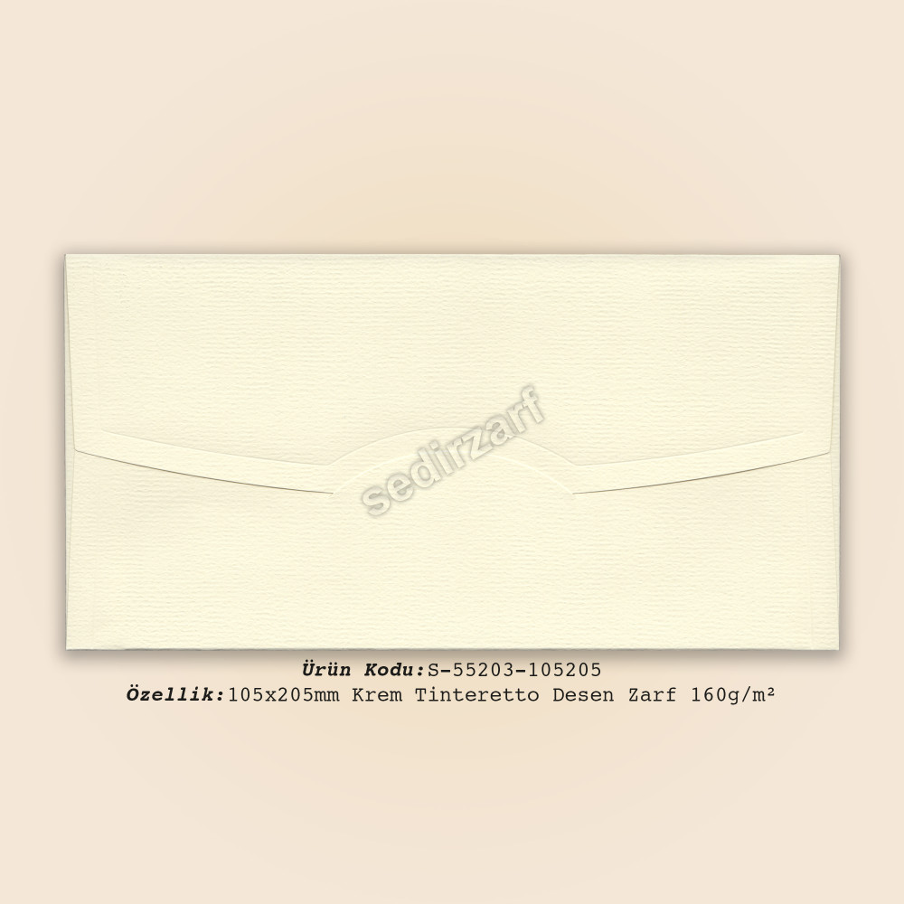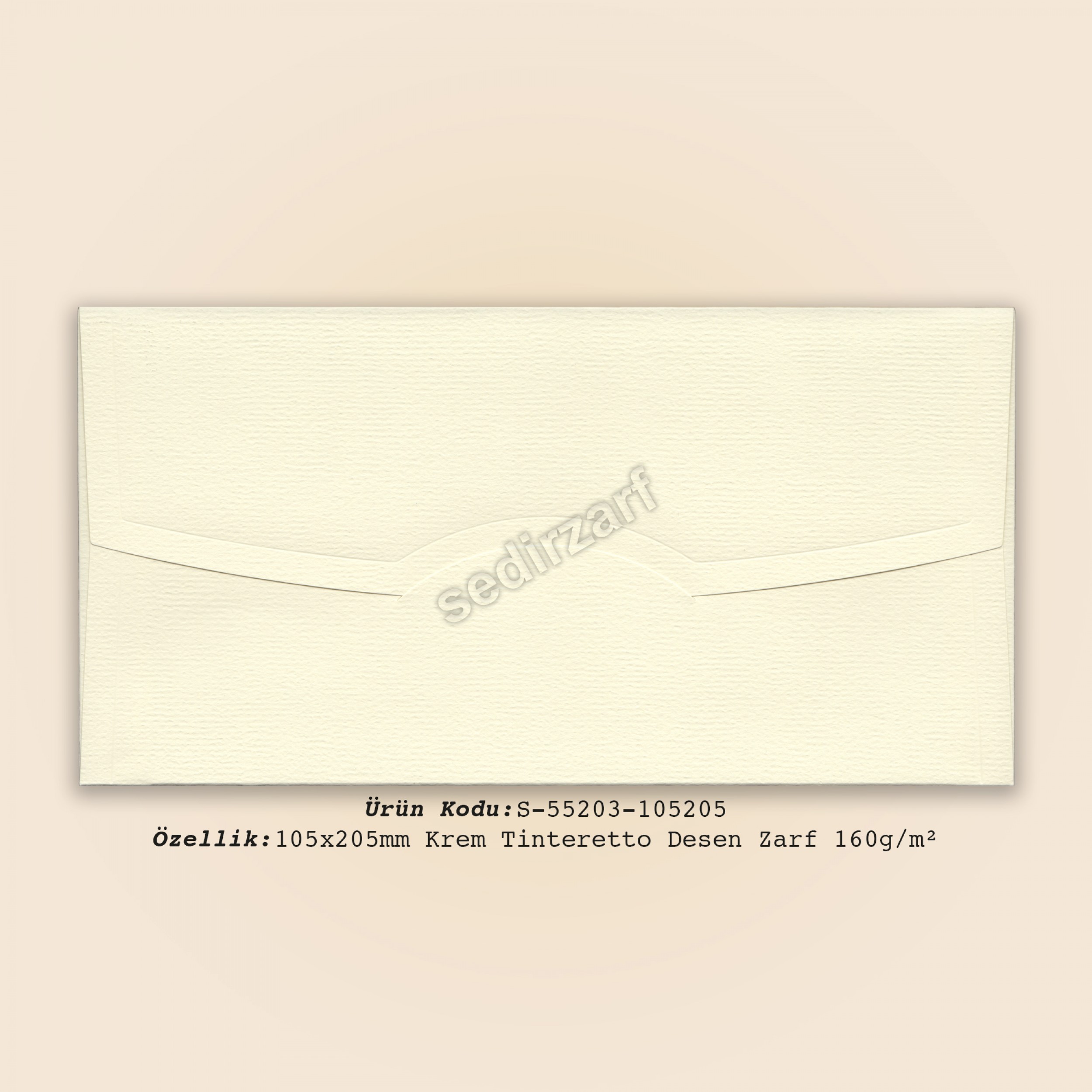 10,5x20,5cm Krem Tinteretto Desen Zarf 160gr/m² kağıttan mamul bu zarf 50'lik paketler halindeSEDİR Zarf işçiliği ve kalitesiyle satışa sunulmaktadır.
