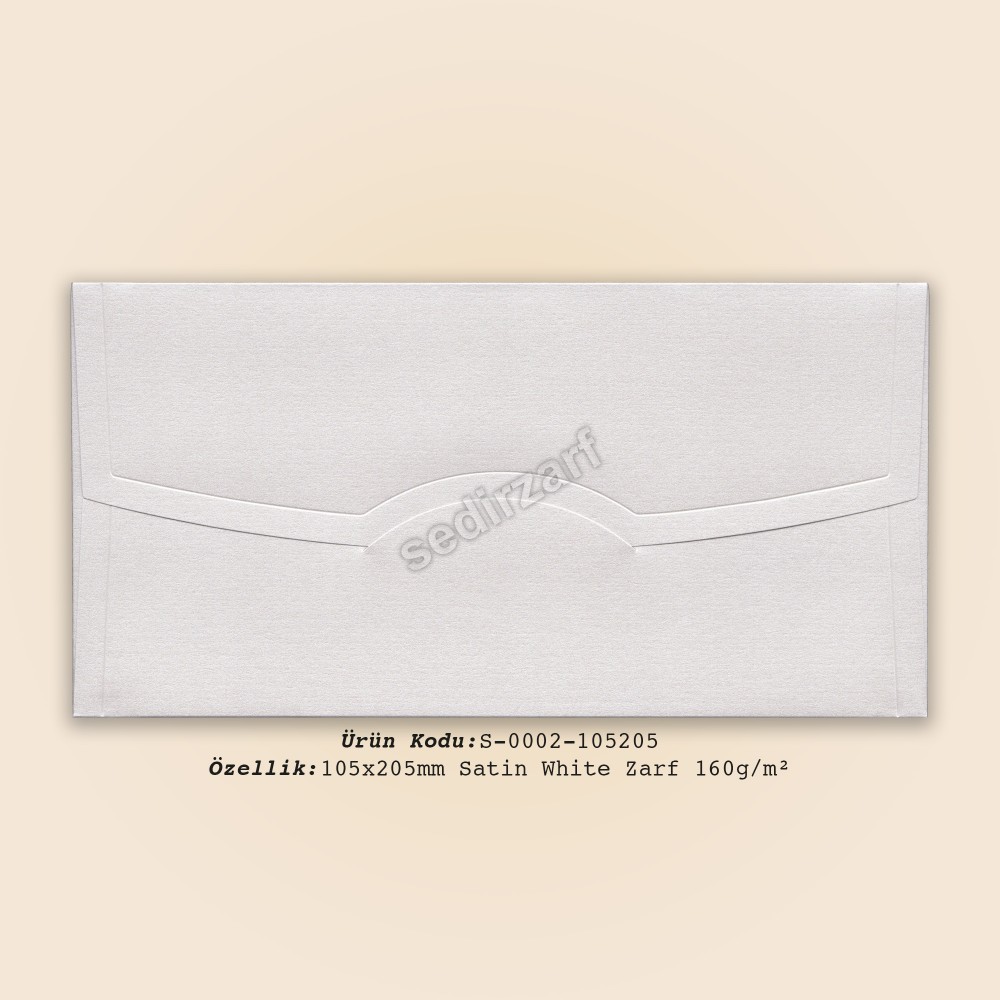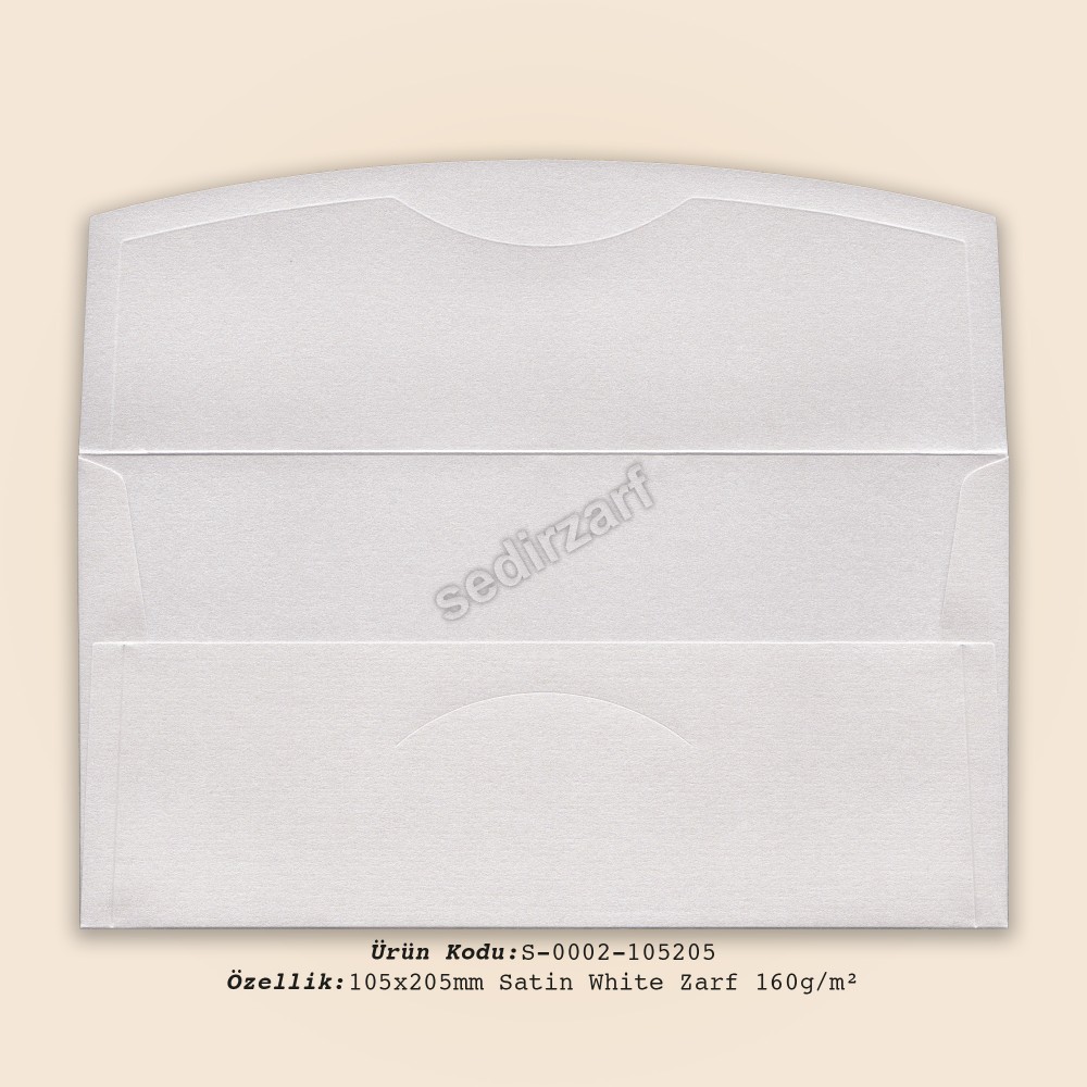 10,5x20,5cm Satin White Zarf 160gr/m² kağıttan mamul bu zarf 50'lik paketler halindeSEDİR Zarf işçiliği ve kalitesiyle satışa sunulmaktadır.