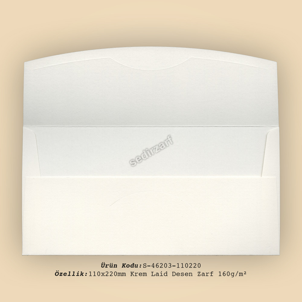 11x22cm Krem Laid Desen Zarf 160gr/m² kağıttan mamul bu zarf 50'lik paketler halindeSEDİR Zarf işçiliği ve kalitesiyle satışa sunulmaktadır.