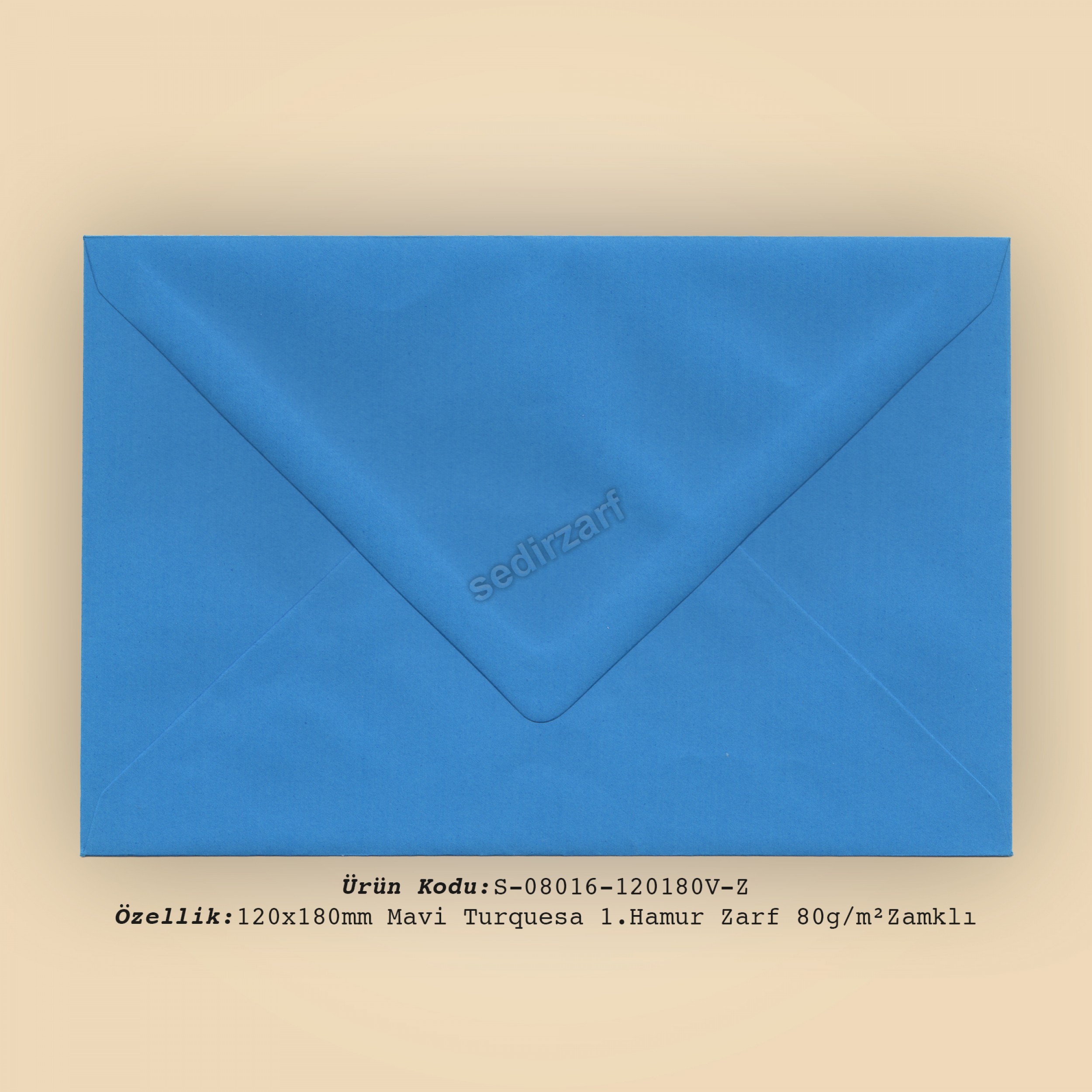 12x18cm Mavi Turquesa 1.Hamur Zarf 80gr/m² kağıttan mamul bu zarf 50'lik paketler halindeSEDİR Zarf işçiliği ve kalitesiyle satışa sunulmaktadır.