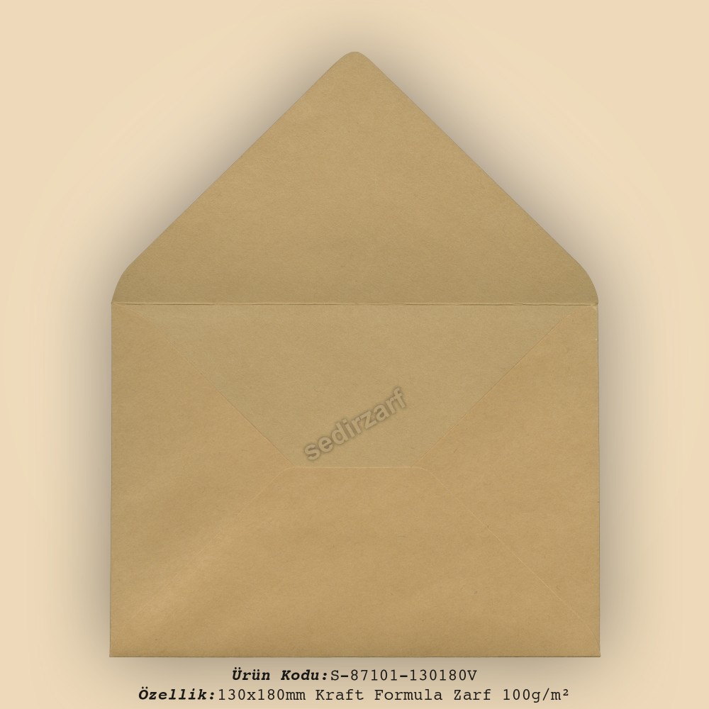 13x18cm Formula Kraft Zarf 100gr/m² kağıttan mamul bu zarf 50'lik paketler halindeSEDİR Zarf işçiliği ve kalitesiyle satışa sunulmaktadır.