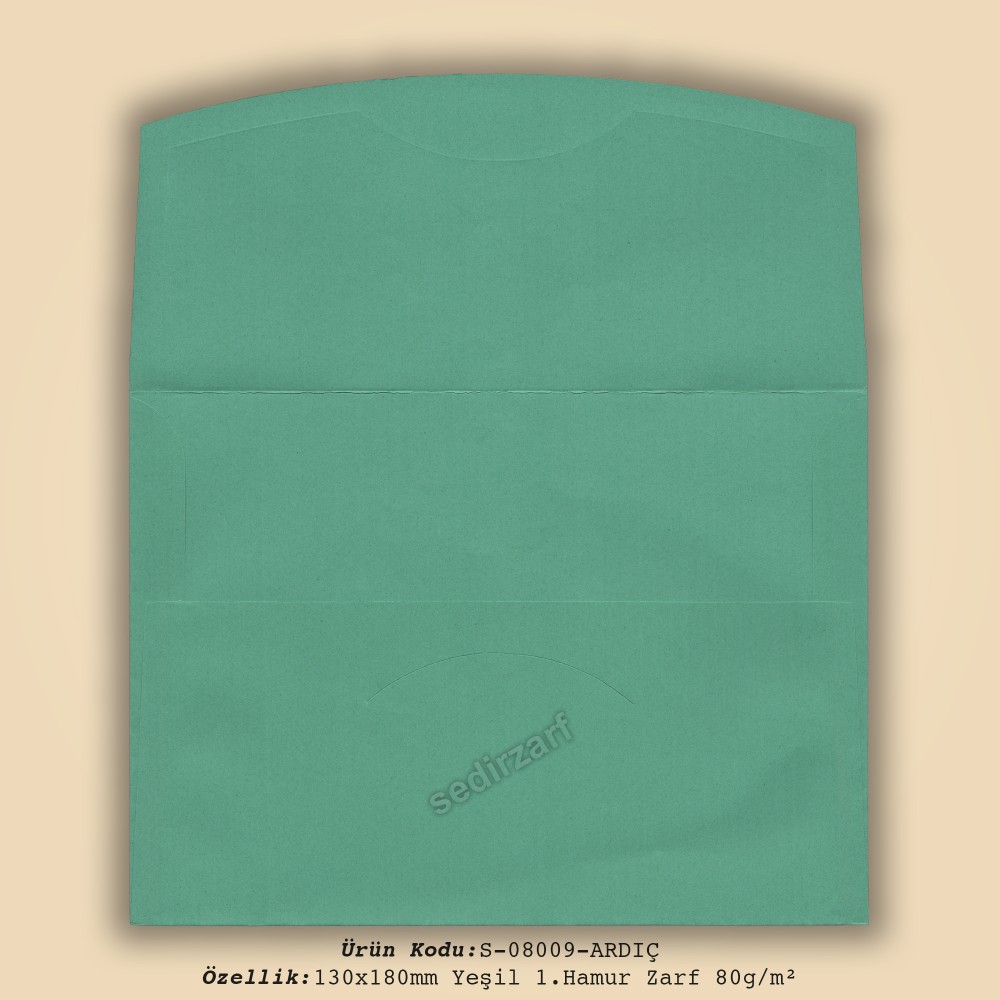 13x18cm Yeşil 1.Hamur Zarf 80gr/m² kağıttan mamul bu zarf 50'lik paketler halindeSEDİR Zarf işçiliği ve kalitesiyle satışa sunulmaktadır.