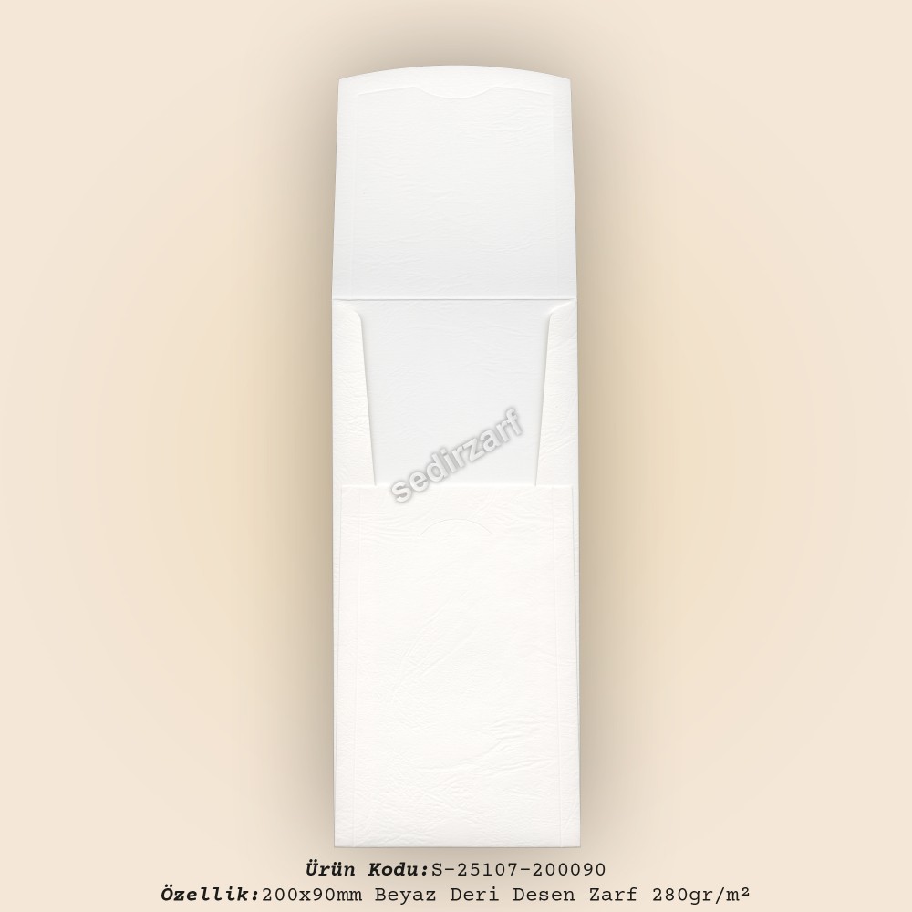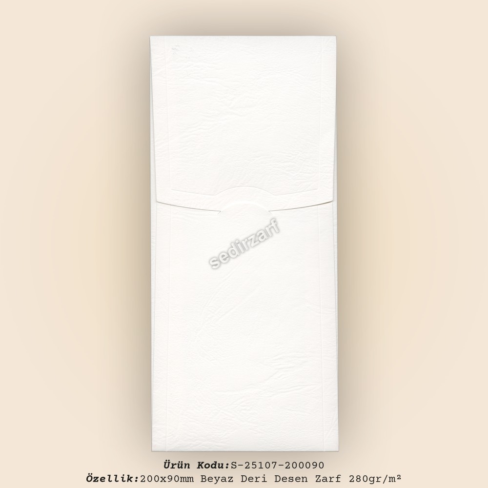 20x9cm Beyaz Deri Desen Zarf 280gr/m² kağıttan mamul bu zarf 50'lik paketler halindeSEDİR Zarf işçiliği ve kalitesiyle satışa sunulmaktadır.