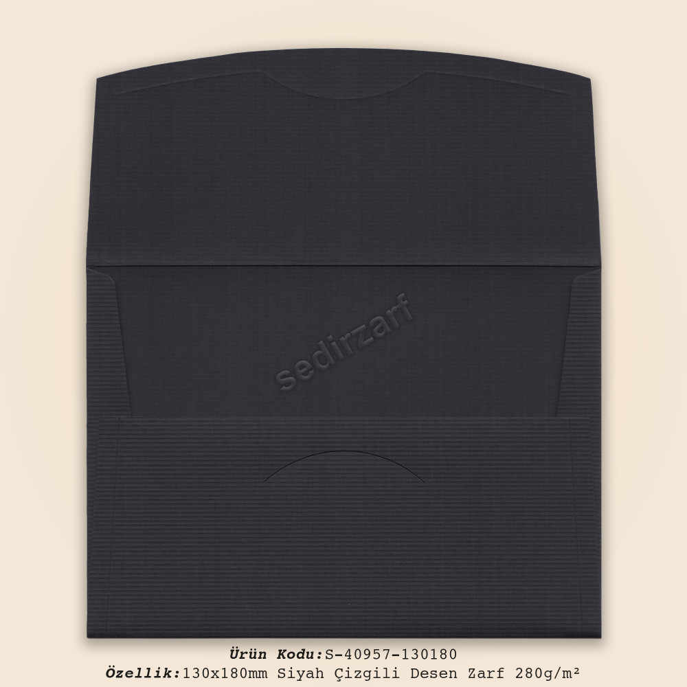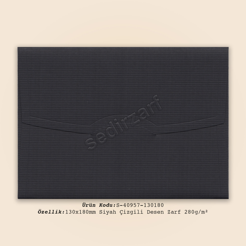 13x18cm Siyah Çizgili Desen Zarf 280gr/m² kağıttan mamul bu zarf 50'lik paketler halindeSEDİR Zarf işçiliği ve kalitesiyle satışa sunulmaktadır.